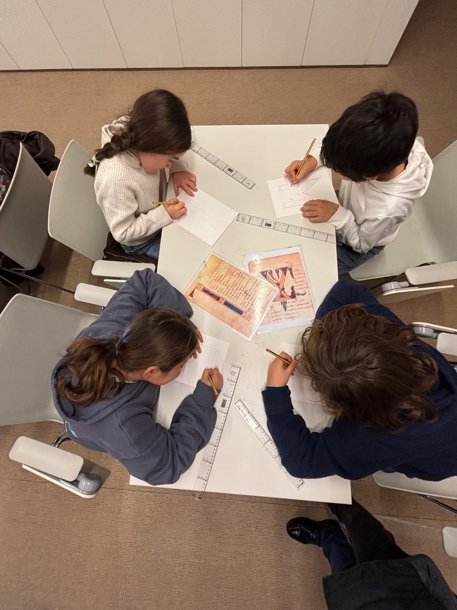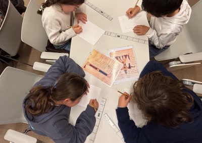 La actividad comenzó con el traslado desde Logroño y la participación en el taller “Scriptorium medieval”, celebrado en el edificio de Cilengua, donde el alumnado pudo acercarse al contexto histórico y cultural vinculado al monasterio y al origen de la lengua escrita.